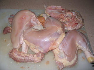 Start by cutting up a whole chicken. I’m convinced that part of the healing power of this soup lies in using the whole chicken rather than just chicken parts. I do take most of the skin off before I cook it, however.