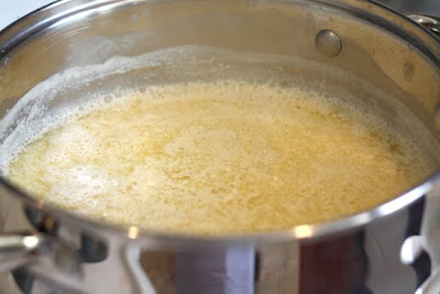 3. In a large pot, bring 5 cups of water to a boil and then add the ground soybeans.