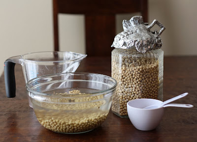 1. Soak the dried soybeans in 4 1/2 cups water for at least 8 hours (you’ll need to soak them longer if it’s cold). I usually soak mine overnight or up to 24 hours if it’s chilly out.